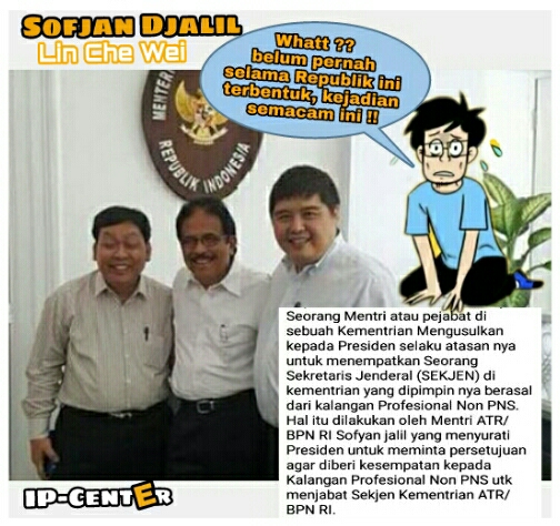 Saya ngak paham dasar lahirnya ide Sofyan Jalil mengusul kan ini kepada presiden apakah ini masukan Dari Tenaga Ahli nya yg dianggap sangat ahli sampai2 Tenaga Ahli yg ber inisial LCW tersebut sudah 2 tahun tidak masuk kantor namun masih menerima Gaji 15 juta/bulan atau saran oknum tenaga Ahli itu pula yang akan diusulkan utk menduduki jabatan Bergengsi dan sangat menentukan Di kementrian ini. Perlu dicatat Lembaga Kementrian ATR/BPN ini adalah lembaga yg sangat strategis menyangkut Hak dasar warga Negara, Lembaga yang mengatur dan menentukan Harta dan Aset2 dasar Bangsa, Lembaga yang mengatur dan menjamin Kredibilitas Dan kelangsungan Bangsa ini. bisa dibayangkan Jika Rahasia menyangkut Luas Wilayah, Luas tanah dan Rahasia lain tentang Tanah Air ini di alihkan atau digadaikan ke pihak asing? apa jadinya kelak Aset2 berupa Tanah diberbagai wilayah Indonesia ini Tergadai pada pihak Asing.