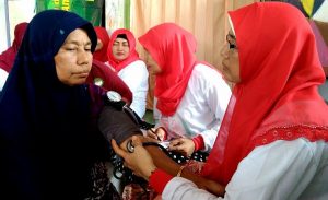 Ratusan ibu- ibu juga manula dan anak- anak nampak padati lokasi pengobatan gratis di tengah kampung padat penduduk ini. Mereka rela antri menunggu giliran untuk mendapatkan pemeriksaan kondisi kesehatannya.