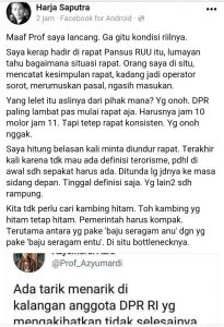 Sebelumnya, Prof. Mahfud MD mengkritisi menuduh ada yang menghalangi pengesahan UU Anti Terorisme. Demikian pula dengan Prof. Azyumardi Azra yang mengklaim ada tarik menarik dikalangan anggota DPR RI yang mengakibatkan tidak selesainya pembahasan RUU Anti Teror.