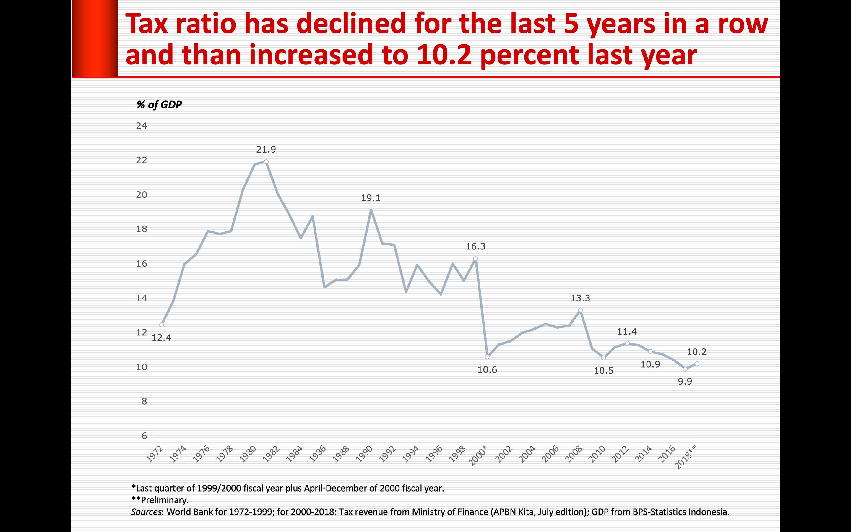 Terakhir, peningkatan utang pemerintah sejatinya bisa dikurangi jika kemampuan pemerintah menarik pajak bisa ditingkatkan. Sejauh ini nisbah pajak (tax ratio) cenderung melambat. Baru tahun 2018 sedikit naik setelah empat tahun berturut-turut sebelumnya selalu turun. Dibandingkan dengan negara tetangga, nisbah pajak kita sungguh sangat rendah.