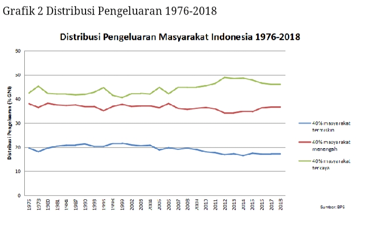 Bandingkan dengan era Gus Dur, saat itu 20% masyarakat terkaya hanya berkontribusi 40,5% pengeluaran, masyarakat menengah menguasai 37,7% pengeluaran, dan 20% masyarakat termiskin menguasai sampai 21,7% pengeluaran.